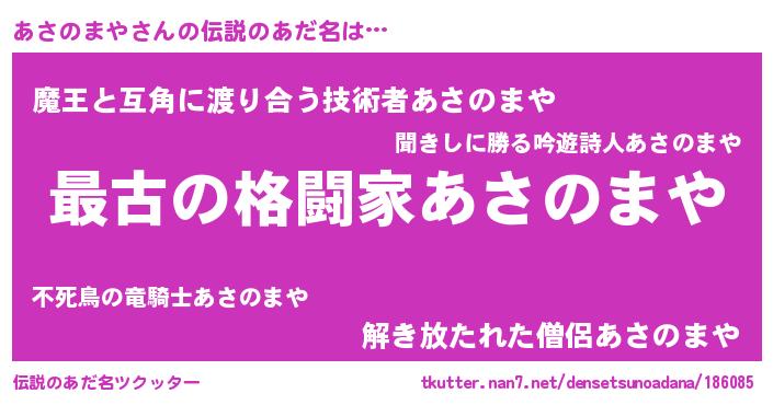 | 意味不明あだ名 | 『あさのまやフォーエバー』 |
