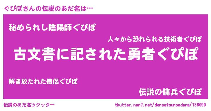 | ヒーロー風カッコイイあだ名 | 『ネオグピポ』『ウルトラぐぴぽマン』 |