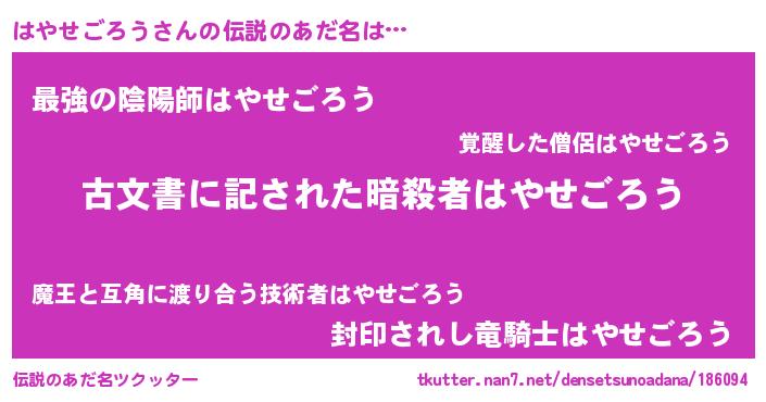 | 意味不明あだ名 | 『住所不定無職はやせごろう(40歳)』 |