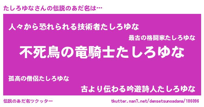 | 意味不明あだ名 | 『ペロリンたしろゆな』『自称たしろゆな』 |