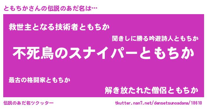 | ヒーロー風カッコイイあだ名 | 『スーパートモチカ』『究極戦士トモチカ』 |