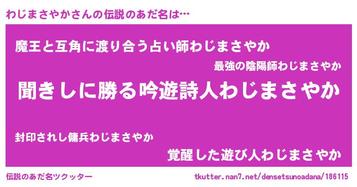 | ヘコむあだ名 | 『わじまさやか(小並感)』『わじ太郎』 |
