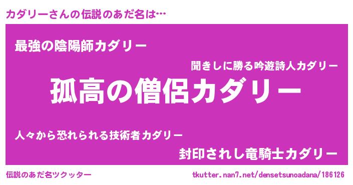 | ヒーロー風カッコイイあだ名 | 『暗黒騎士カダ』『仮面カダダー』 |