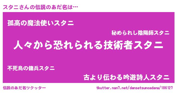 | ヒーロー風カッコイイあだ名 | 『正義の使者スタニ』『仮面スタダー』 |