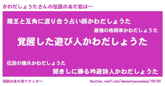| 意味不明あだ名 | 『住所不定無職かわだしょうた(85歳)』 |