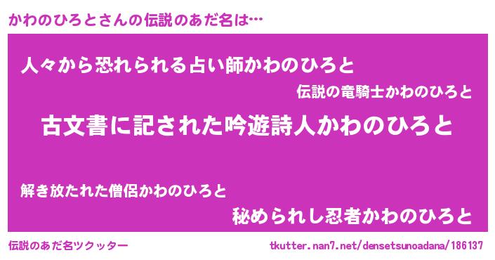 | ヒーロー風カッコイイあだ名 | 『ネオカワノヒロト』 |