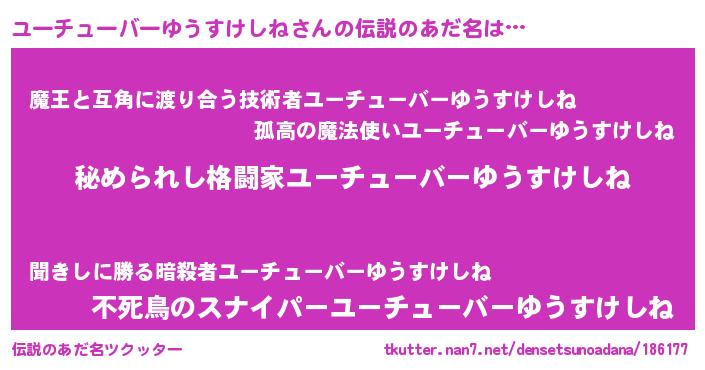 | 意味不明あだ名 | 『しいたけ科ユーチューバーゆうすけしね属』 |
