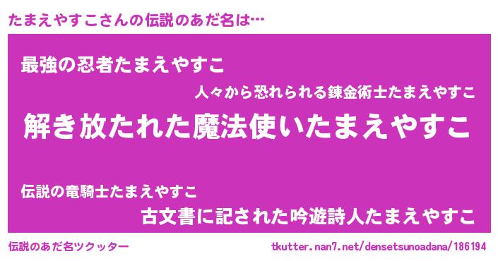 | ヒーロー風カッコイイあだ名 | 『幻影騎士タマ』『最強戦士タマエヤスコ』 |
