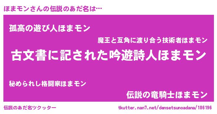 | ヘコむあだ名 | 『ほまモン(小並感)』『ほまっちょ』 |