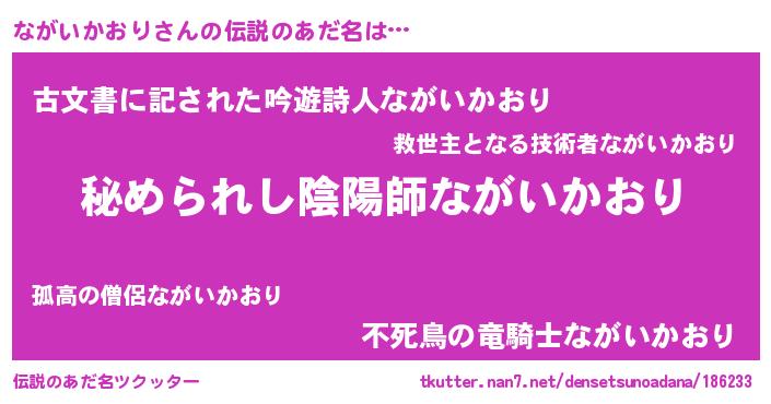 | 意味不明あだ名 | 『自称ながいかおり』 |