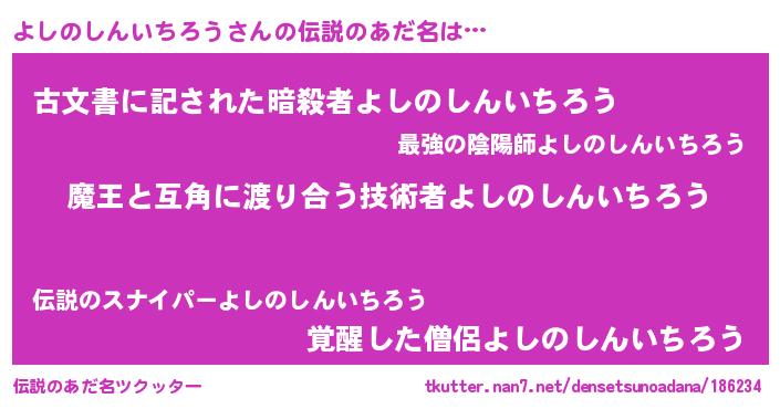 | 女子向けラノベタイトル風あだ名 | 『よしのしんいちろう恋絵巻』 |