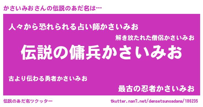意味不明あだ名 | 『ペロリンかさいみお』『自称かさいみお』 |