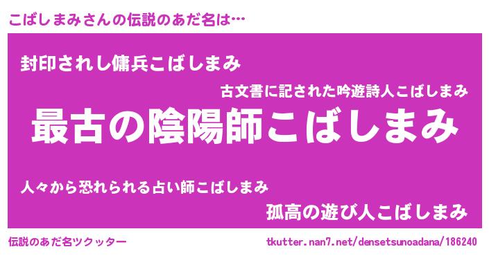 | ヒーロー風カッコイイあだ名 | 『仮面コバダー』『スーパーコバシマミ』 |