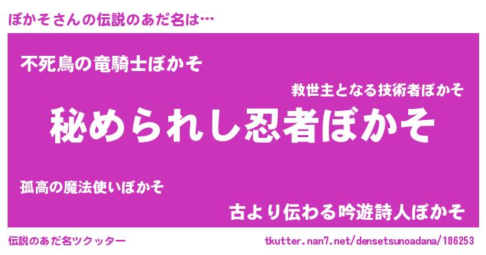 | 意味不明あだ名 | 『住所不定無職ぼかそ(59歳)』『自称ぼかそ』 |