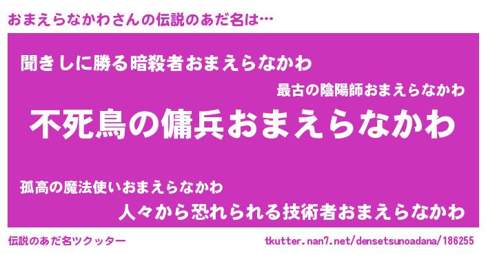 | ヒーロー風カッコイイあだ名 | 『スーパーオマエラナカワ』 |
