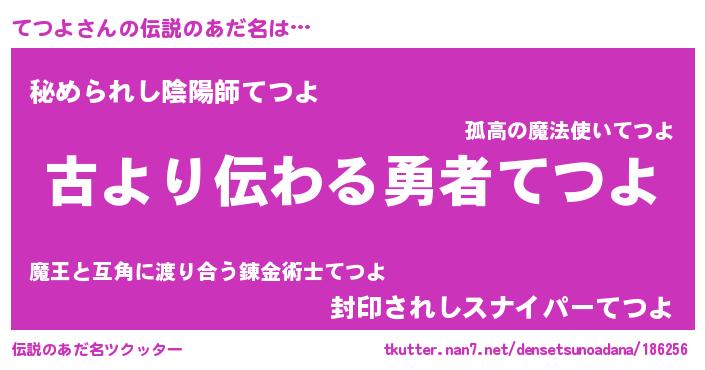 | 男性向けラノベタイトル風あだ名 | 『てつよという概念が存在しない退屈な世界 』 |
