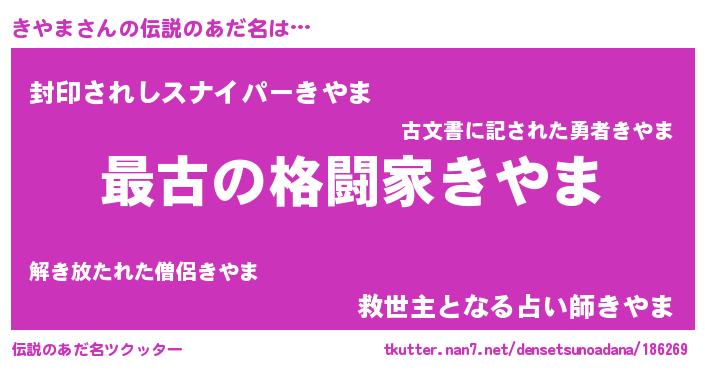 | 意味不明あだ名 | 『自称きやま』『住所不定無職きやま(95歳)』 |