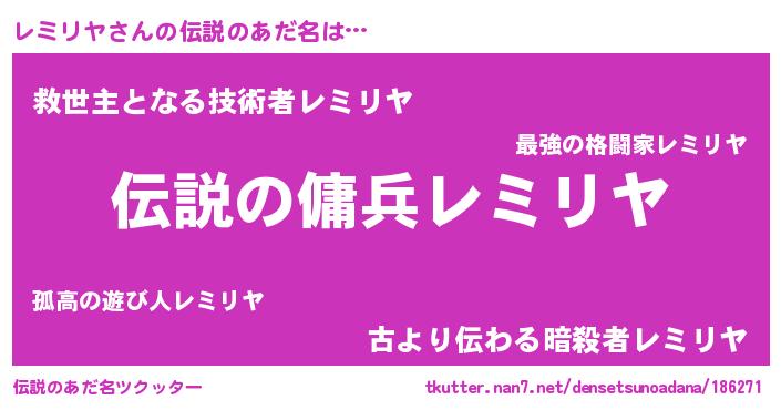 | ヒーロー風カッコイイあだ名 | 『スーパーレミリヤ』『ネオレミリヤ』 |