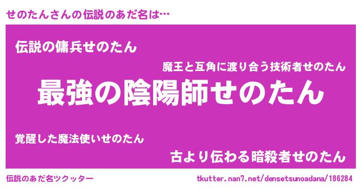 | 意味不明あだ名 | 『せのたんフォーエバー』 |