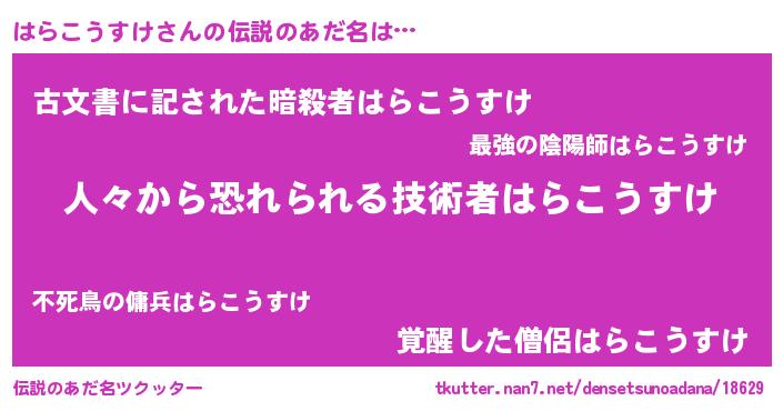 | 男性向けラノベタイトル風あだ名 | 『おまえをオタクにしてやるから、俺をはらこうすけにしてくれ! 』 |