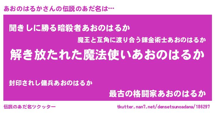 | 女子向けラノベタイトル風あだ名 | 『闇のあおのはるか』 |