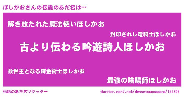 | 意味不明あだ名 | 『永久保存ほしかお』『自称ほしかお』 |