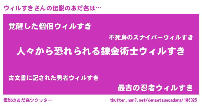 | ヒーロー風カッコイイあだ名 | 『正義の使者ウィルすき』『幻影騎士ウィ』 |