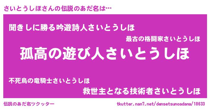 | 意味不明あだ名 | 『とにかく怪しいさいとうしほ』 |