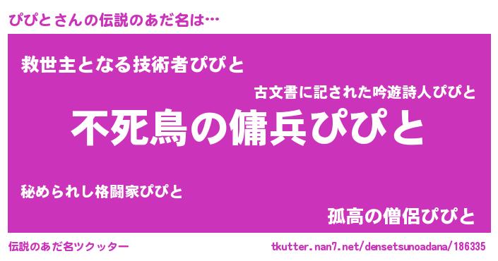 | 女子向けラノベタイトル風あだ名 | 『ぴぴと姫と円卓の騎士』『ぴぴと恋絵巻』 |