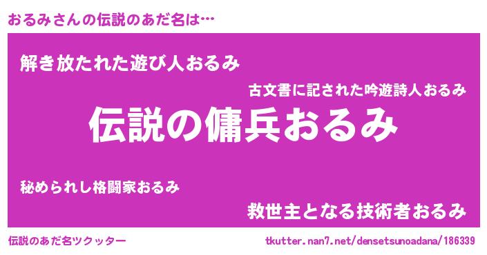 | 男性向けラノベタイトル風あだ名 | 『おるみの憂鬱』『魔弾の王とおるみ』 |