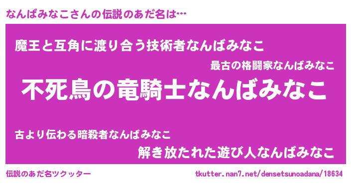 | 女子向けラノベタイトル風あだ名 | 『なんばみなこ姫と円卓の騎士』 |