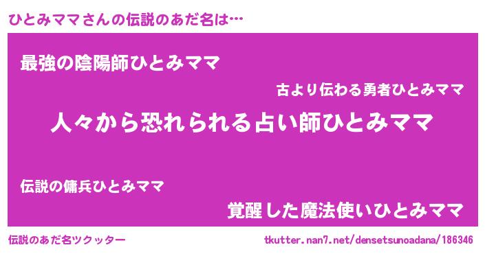 | 女子向けラノベタイトル風あだ名 | 『ひとみママなんてお断りですっ。』 |