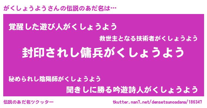 | 男性向けラノベタイトル風あだ名 | 『ガクショウヨウアートオンライン』 |