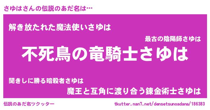 | ヒーロー風カッコイイあだ名 | 『スーパーサユハ』『サイバー戦士サユハ』 |