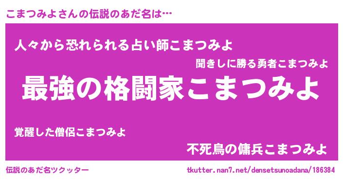 | ファンタジー風あだ名 | 『エターナルコマツミヨー』『コマフェル』 |