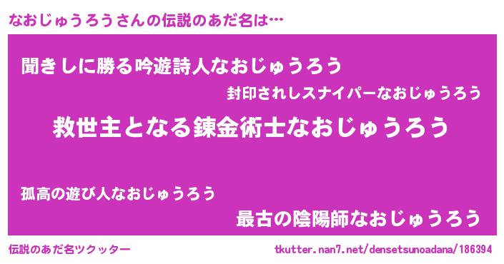| 女子向けラノベタイトル風あだ名 | 『なおじゅうろうストレイドッグス』 |