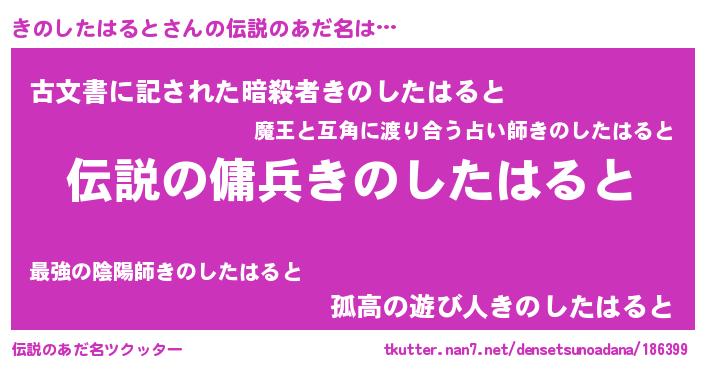 | 意味不明あだ名 | 『住所不定無職きのしたはると(39歳)』 |