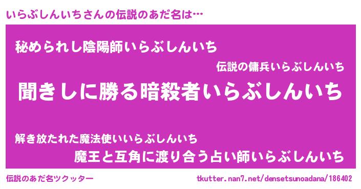 | 意味不明あだ名 | 『永久保存いらぶしんいち』 |