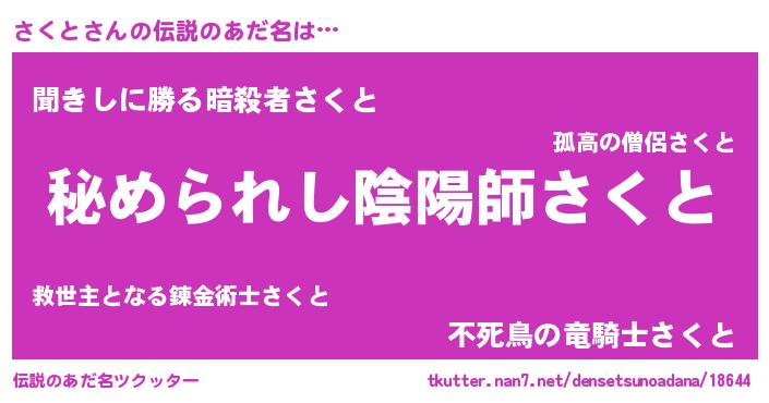 | ファンタジー風あだ名 | 『ヴァルサクーナ』『エターナルサクトー』 |