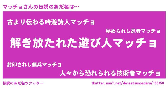 | ヘコむあだ名 | 『マッぷりん』『マッチョ(笑)』 |