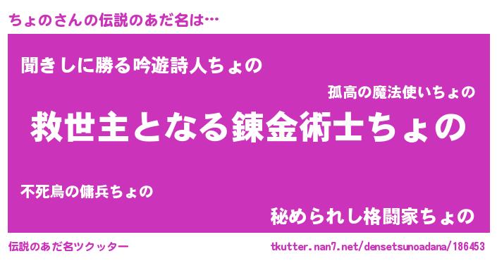 | 意味不明あだ名 | 『ヨモギ科ちょの属』『永久保存ちょの』 |