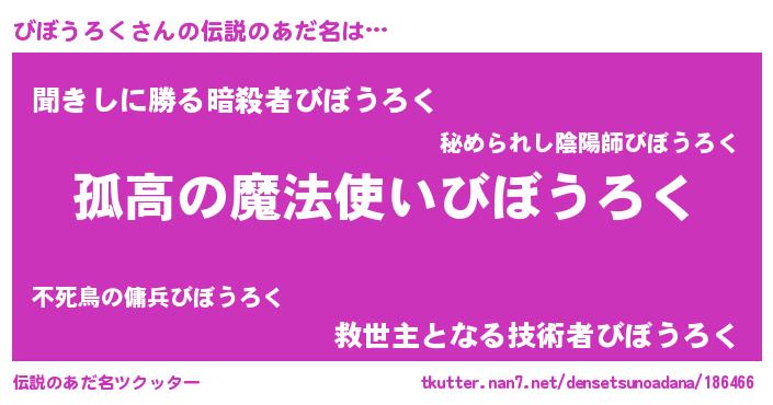 | 意味不明あだ名 | 『住所不定無職びぼうろく(3歳)』 |