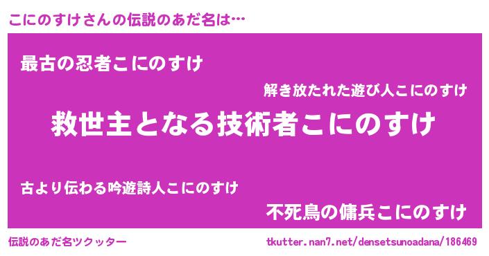 | 胡散臭い通販商品みたいなあだ名 | 『あなたにだけ特別に提供する100年もののヴィンテージワイン…その名も「こにのすけ」』 |