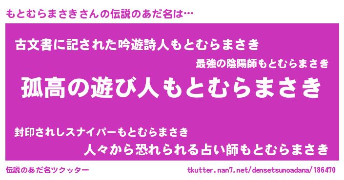 | ヘコむあだ名 | 『もとっぺ』『もとむらまさき(笑)』 |