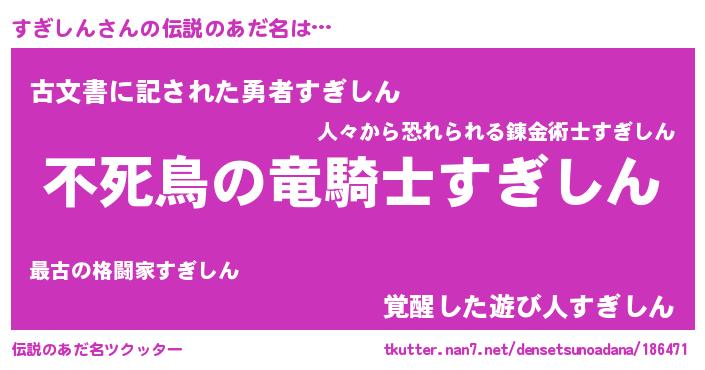 | 自動車の名前っぽいあだ名 | 『スールスギイス』『スギティマ』 |