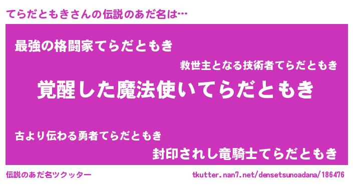 | 意味不明あだ名 | 『とにかく怪しいてらだともき』 |