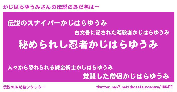 | 男性向けラノベタイトル風あだ名 | 『カジハラユウミスレイヤー』 |