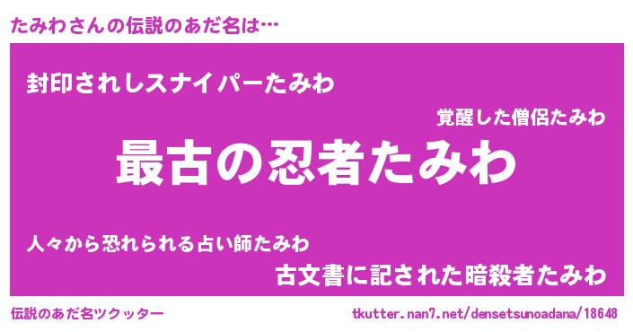 | ポケモン風あだ名 | 『タミワダネ』『メロタッミ』 |