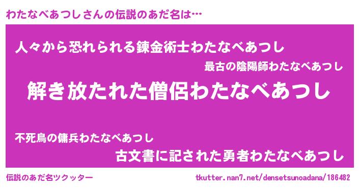 | ヒーロー風カッコイイあだ名 | 『仮面ワタダー』『魔戒騎士ワタ』 |