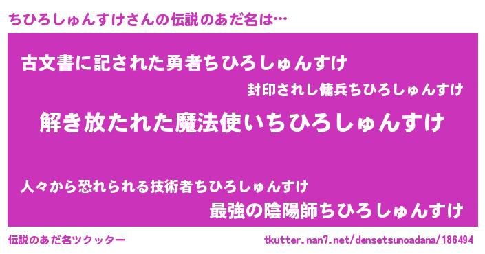 | ヒーロー風カッコイイあだ名 | 『幻影騎士チヒ』『ネオチヒロシュンスケ』 |